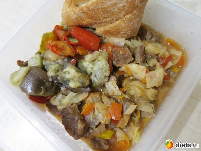 обед - наивкуснейшая тушеная говядина с овощами + зерновой хлебушек