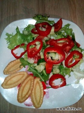 Из за раннего обеда пришлось сделать перекус ( салат с пустыми тарталетками) и сразу ужин...
