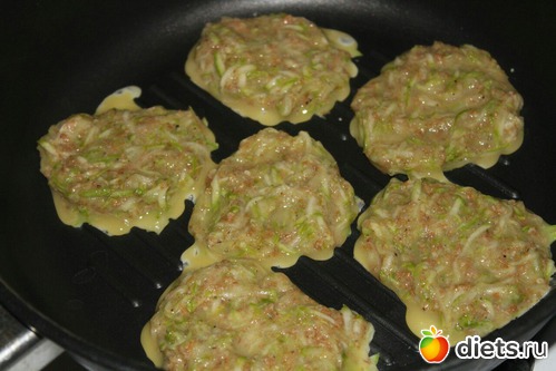 Утром жарила на грильке оладушки с цуккини ( без масла, в составе сам цуккишка, яйцо, овсяня мука и клетчатка) в готовом виде уже не фоткала, была голодная