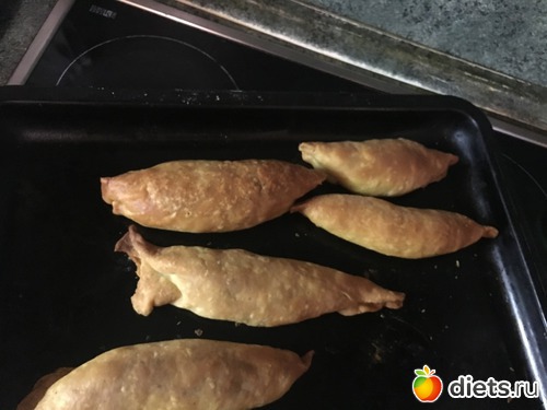 Выкладываем пирожки, смазываем водой ( в идеале желтком, но нам же нельзя)