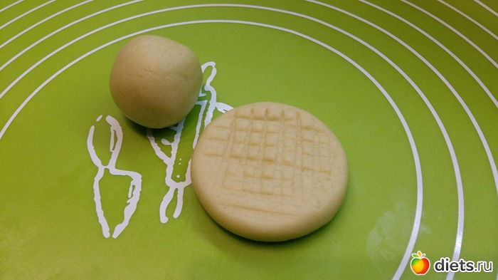После холодильника формирую печенье. Можно скатать шарики любого размера, немного приплюснуть и нанести рисунок с помощью зубчиков вилки