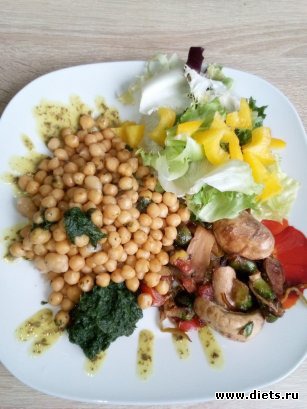 Обед - нут вареный + шпинат ( очень вкусное и нежное сочетание благодаря шпинату)