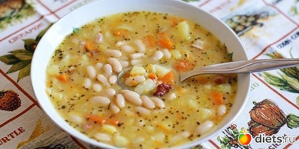 8. Добавить зажарку в суп. Посолить и поперчить по вкусу. Варить фасолевый суп с зажаркой 5–10 минут.
