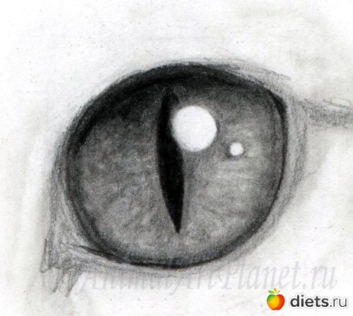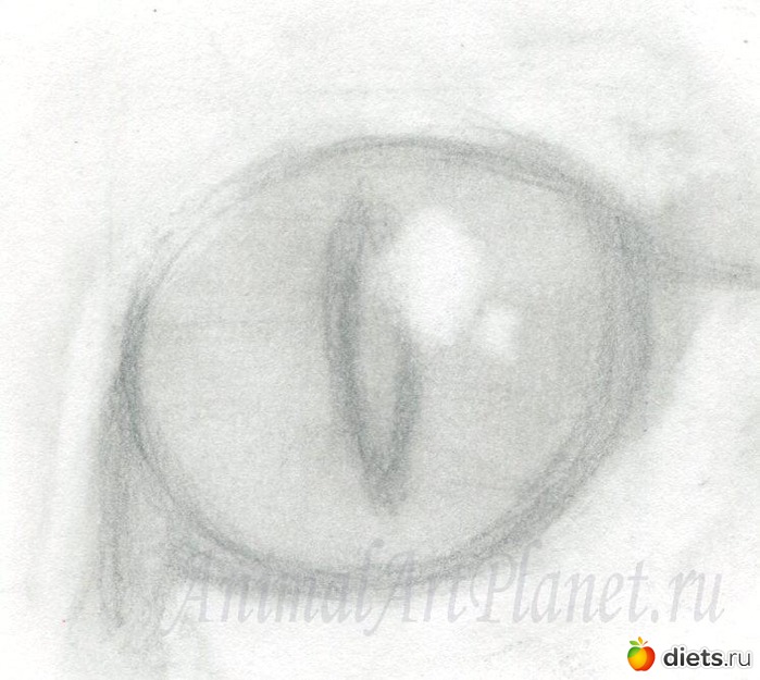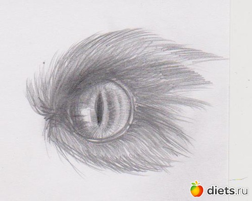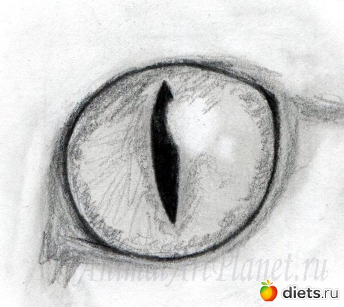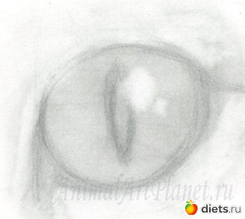 Мягким карандашом нарисуйте прожилки в радужной оболочке. Лучше всего для этого подойдет 4В, но также можно взять 3B и 2В.