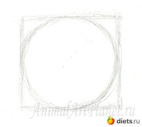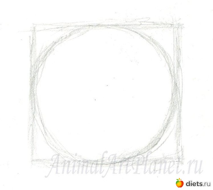 Начните с круга. Квадрат облегчит рисовать окружность. Используйте F или НВ карандаш.