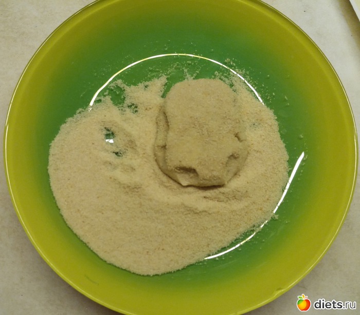 Мокрыми руками из полученной массы лепим сырники и обваливаем в сухарях.