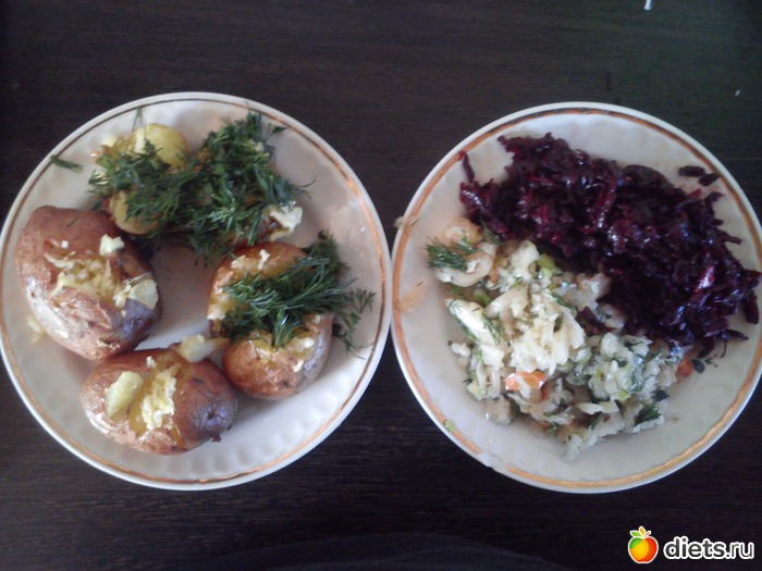 Итак, Обед – картофель запеченный в мундире с чесноком (добавила за 5 минут до готовности) со свежим укропом, салат из свеклы с чесноком и квашенная капуста, съела целый пучок петрушки. Все это было ОЧЕНЬ щедро заправлено оливковым маслом (я - за полезные жиры). Вкуснятина обалденная и жизнь сразу же стала просто прекрасна.