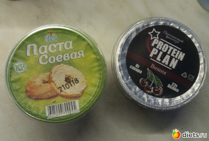Это соевый йогурт типа фитнес (22 гр белка в банке, без сахара, там ещё какие то вкусы были). На мой вкус вчерашний мне понравился больше, этот какой то приторный