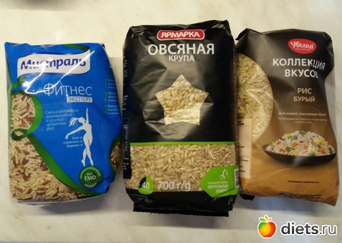 Поскольку я перестала есть животный белок, стала больше есть круп. Вот, обновила асортимент: фитнес-эксперт от Мистраль я не впервые уже беру, мне он нравится. Коричневый рис я вообще люблю. Овсяную крупу взяла впервые, попробую.