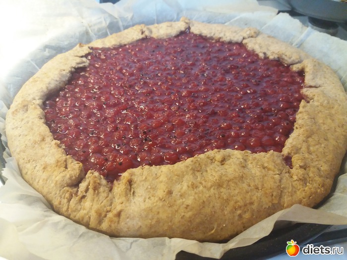 Если муки много, то есть примерно 2.5 стакана, то тесто получается довольно крутое, вымешивать его приходится с некоторым усилием. Но после расстойки оно становится эластичным, хорошо раскатывается в большой тонкий пласт, отлично держит форму и не пропускает ягодный сок. Если же замесить мягкое тесто, с меньшим количеством муки (скажем, 1.5-2 стакана), то оно практически не раскатывается, а тянется, очень напоминая штрудельное. И галета из такого теста получается мягкая, нежная, но непрочная что ли. Я бы его скорее для рулета использовала.