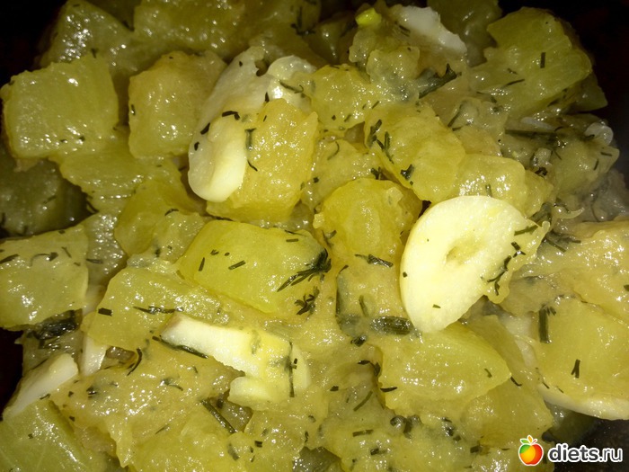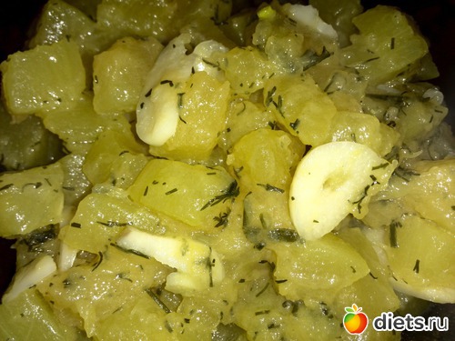 Ужин тушеный кабачок с укропом и чесноком.