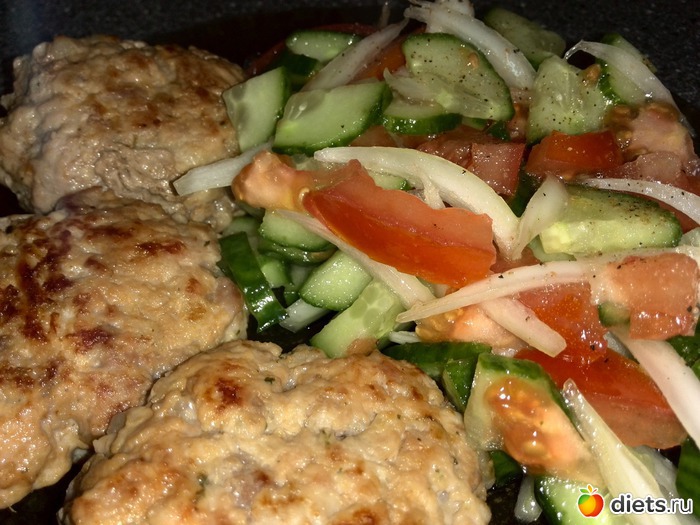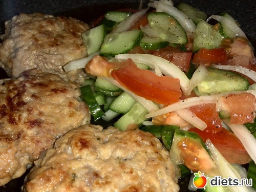 Обед котлеты куриные и салат.
