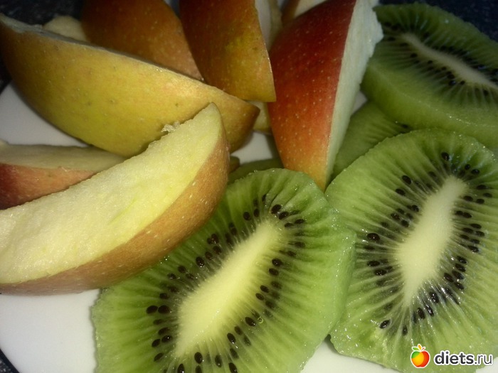 Завтрак киви и яблоко.