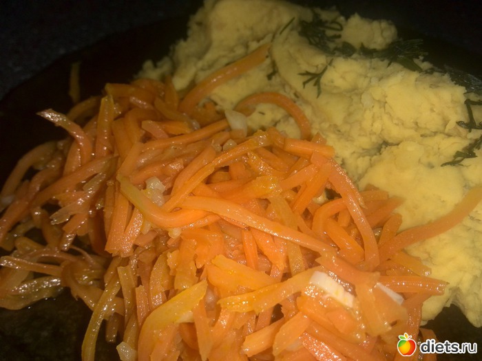 Ужин пюре из нута и морковка по-корейски.