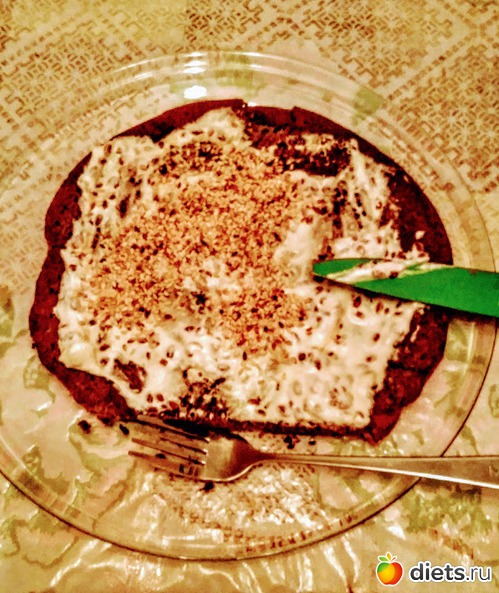 Завтрак наркомана: блин из клетчатки, двух яиц с семечками и творожным сыром. Кофе с кокосовым молоком. Сыр. Граммов 20. Семена льна, кунжута граммов 15.