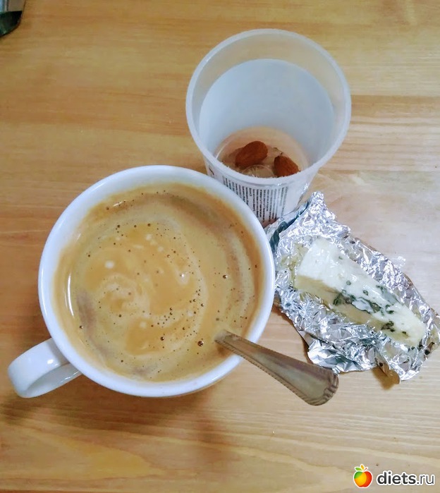 Вот, например, перекус сегодня: несколько миндалей (остальные схомячила утром, граммов 35 было) и кусочек голубого сыра. А хочется рыбки с салатом или индейки. Но вчера готовить было некогда - ухватила то, что было.