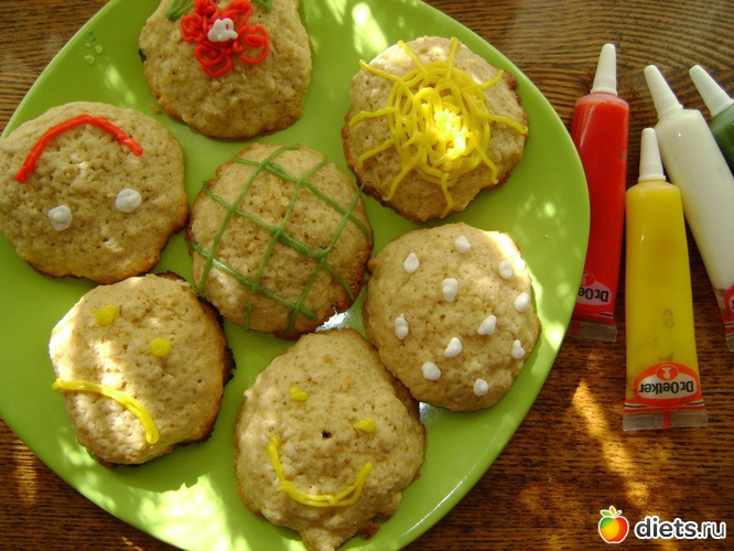 У меня ещё были пищевые красители и несколько печенек я попыталась разрисовать...