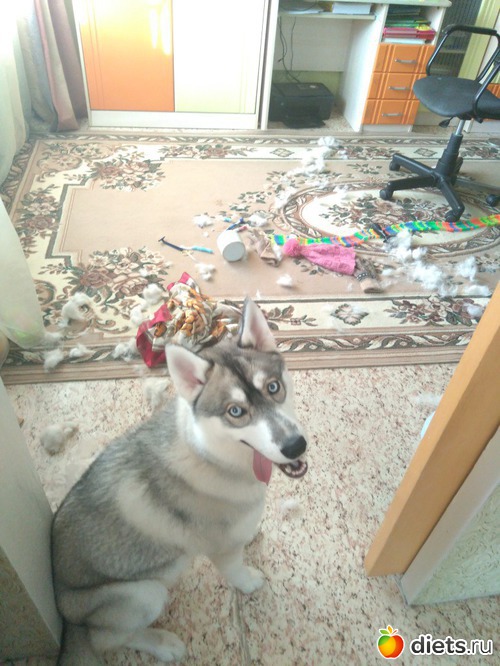 Обычно спокойно сидит дома... А тут просекла, что мы куда-то уезжаем - и отомстила...