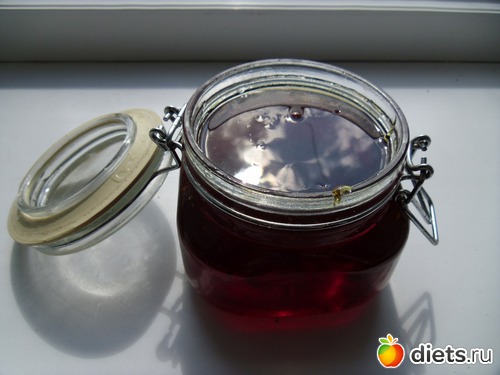 дальше влила отфильтрованную воду 1 литр и поставила на маленький огонь варится 15 минут, время от времени помешивая... и оставила настаиваться на ночь... утром слила настой в отдельную посуду через марлю и добавила 1 килограмм сахара... снова на маленький огонь - на 2 часа... в самом конце влила сок 1 лимона...