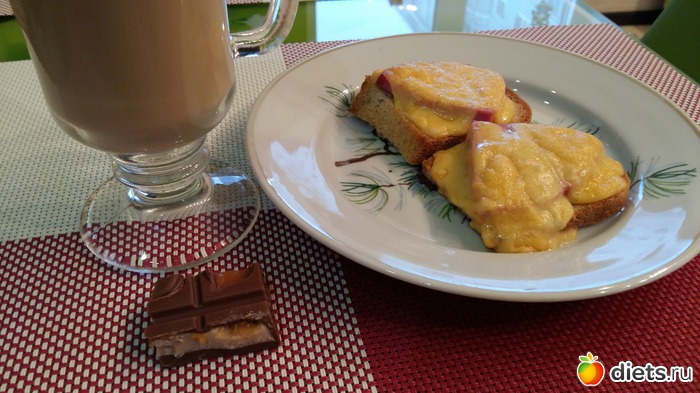 А чет ничего не было, быстренько под гриль минут на 7 в духовку засунула колбаска докторская и сыр на хлебушке