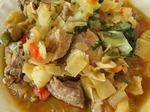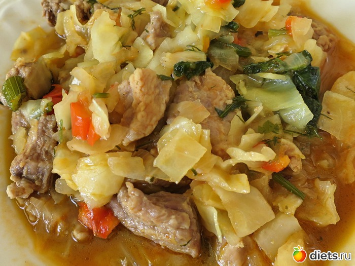 ела на завтрак яблоко, на обед свининку с тушеной капустой +хлеб, на ужин свининку без хлеба
