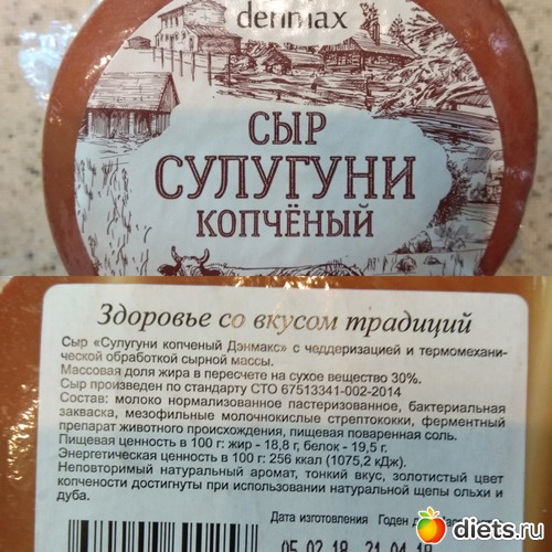 3. Сулугуни копчёный. Суховат, калориен, но мне нравится. Похож на колбасный, но консистенция отличается.