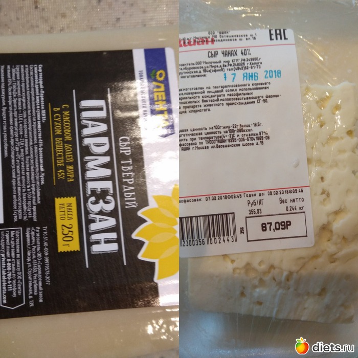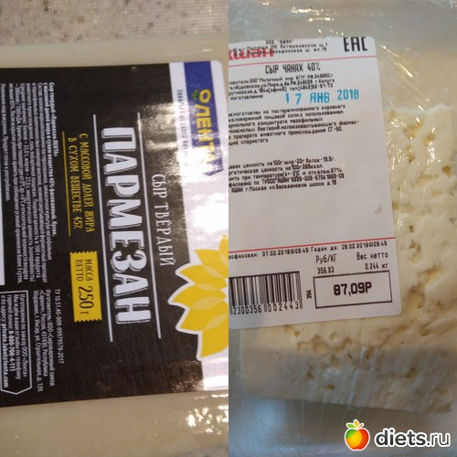7.8. Есть в моем холодильнике ещё 2 сыра. Но я их не ем. Первый - пармезан фирмы Лента. Не хочу его. Я сейчас мягкими сырами наедаюсь