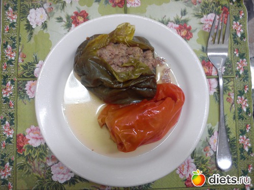 Обед - перцы, фаршированные мясом. Добивала также острую сальсу с чили. Приготовила только два перчика, мало. Перцы я скушала с огромным удовольствием, т.к. после тяжелых витаминок наконец-то дождалась горячего.
