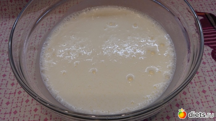 хорошо перемешиваю вилкой, можно миксером или венчиком, масса становится пышной