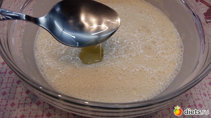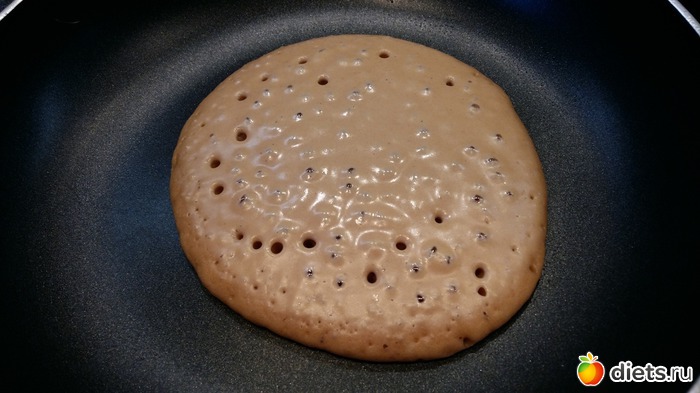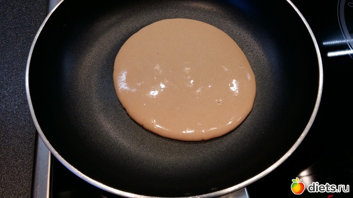 Пеку на сухой сковороде, наливаю ложкой от мультиварки, в ней примерно 2-3 столовых