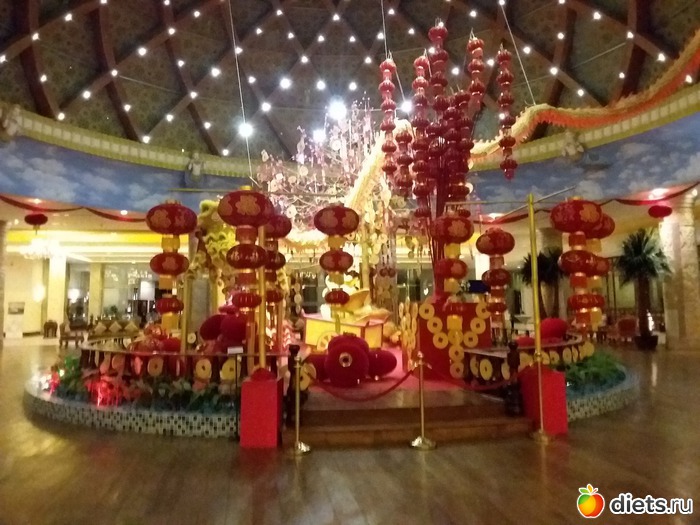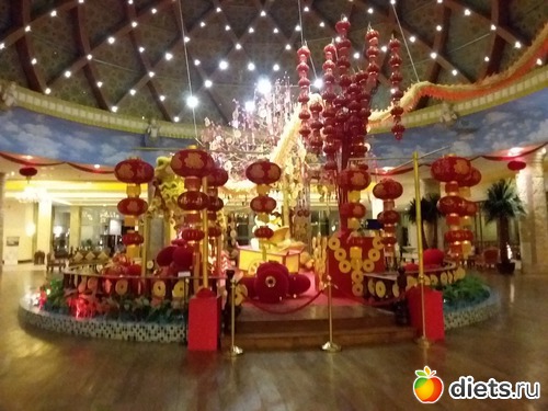 Еще все украшено к китайскому новому году.
