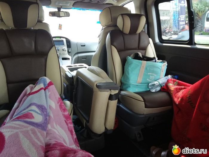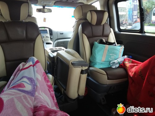 Поехали на ее машине с водителем. У нее практрчески миниавтобус на 9 мест, мы там круто расположились с пледами и подушками. Хороший кондишен иидаже звездное небо есть.