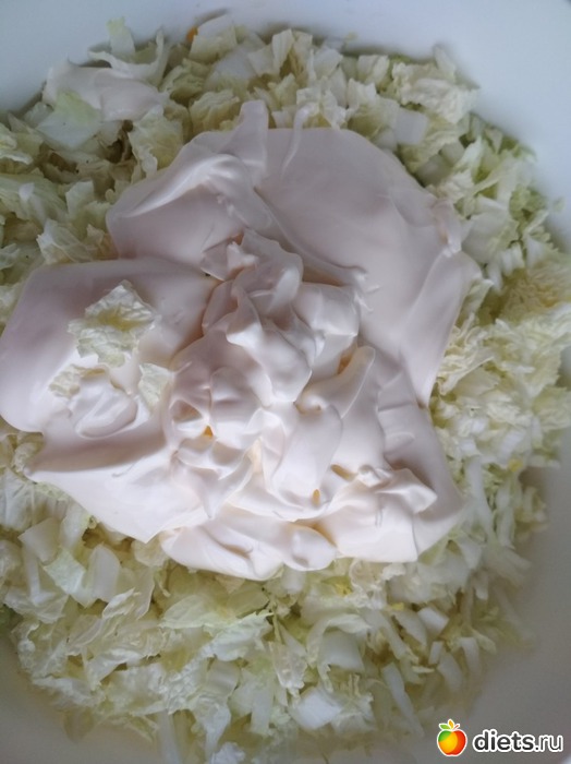 А вот постный вариант салатика: пекинская капустка, тёртые маринованные огурчики, свежая морковка и свежее яблочко. Заправить постным маслом.