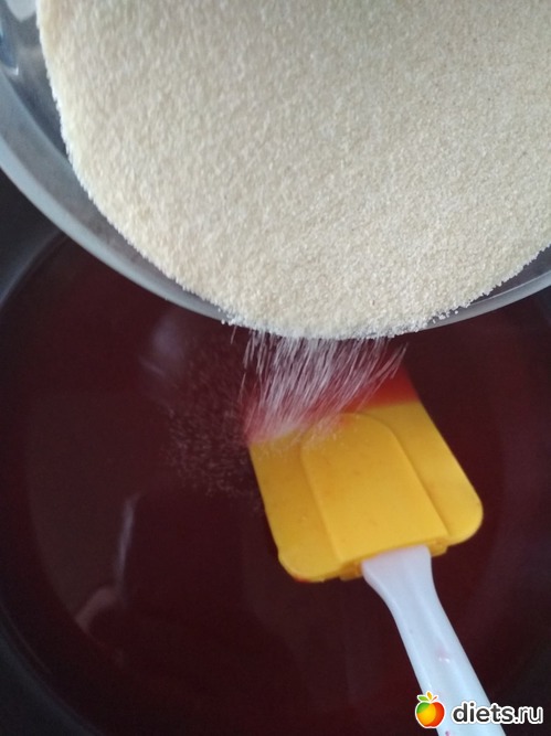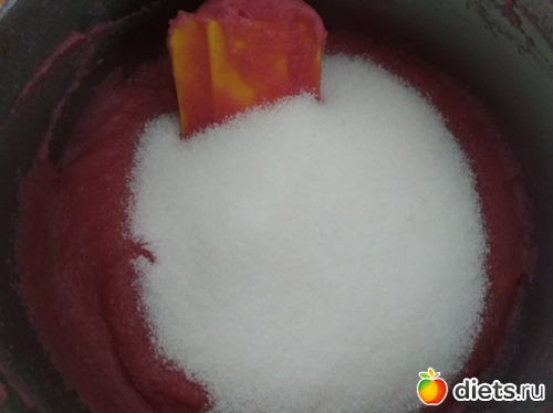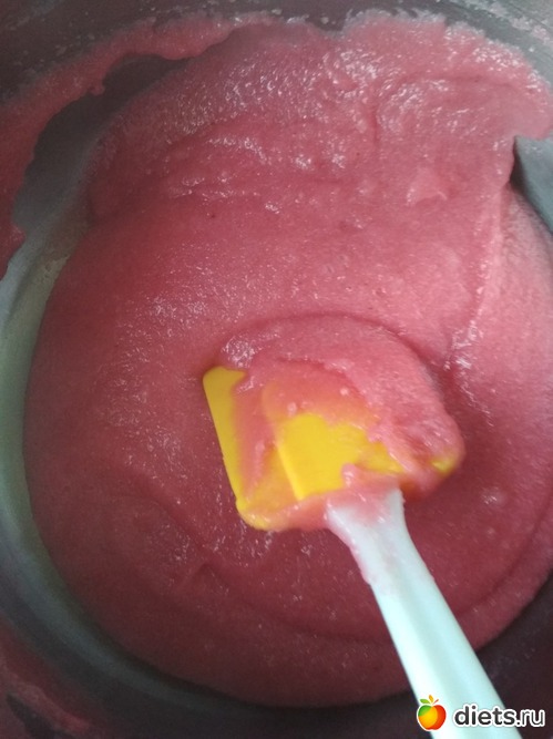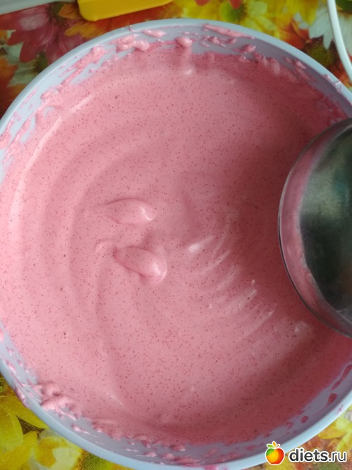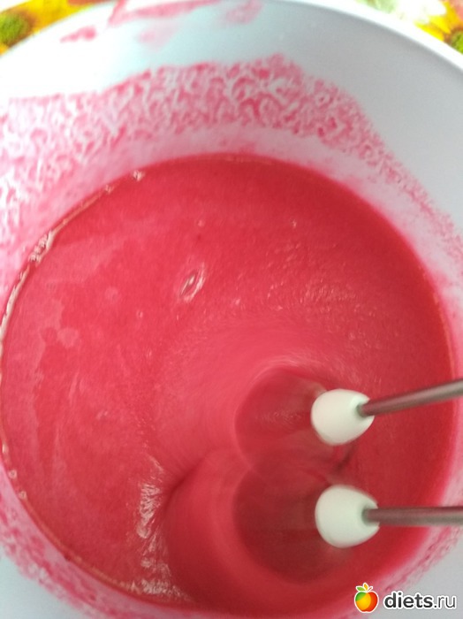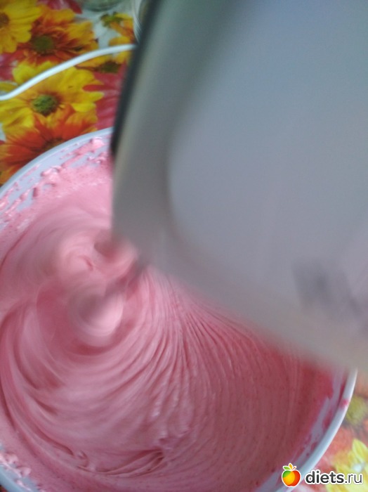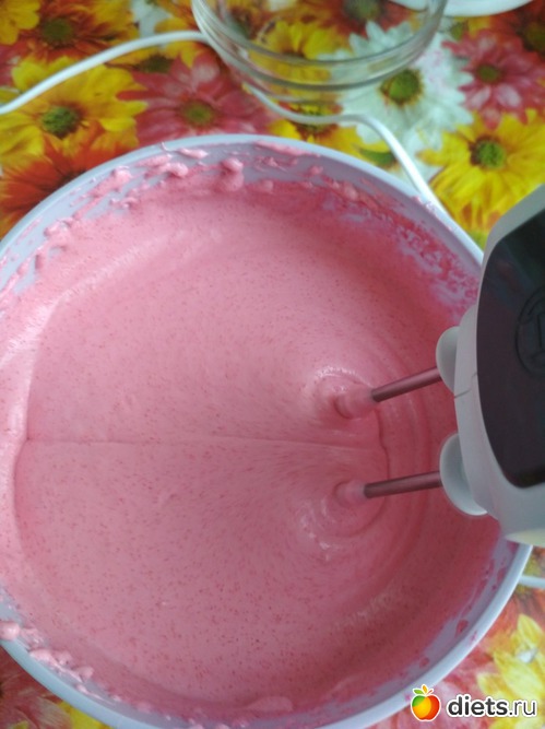 Теперь начала взбивать, не дожидаясь, когда остынет. Только не венчиком, а миксером на максимальной скорости