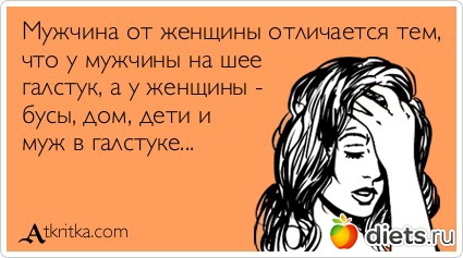 И виноватить бабу - это прям национальная забава какая-то. Сколько раз встречала на женских форумах: жалуется кто-нибудь на мужа - пьет, гуляет, с ребенком не помогает, в танки играет. А ей: это ты виновата, что его домой не тянет, будь с ним поласковее, белье кружевное нацепи и т.п. Даже боюсь представить, что мужику бы в аналогичной зеркальной ситуации на форуме посоветовали с женой сделать