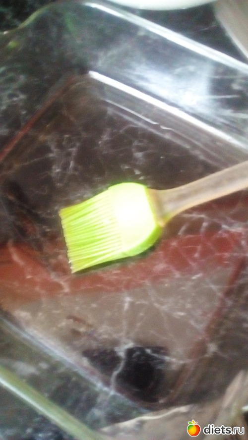 Я, последнее время, как-то перешла на стеклянные формы-их требуется смазывать. Смажем форму кисточкой с растительным маслом..