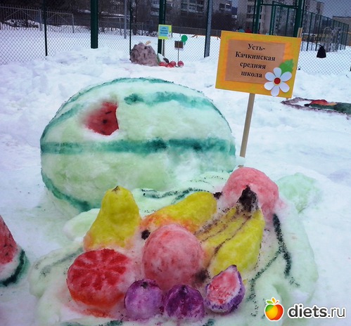 Умудриться такой арбуз из снега сделать