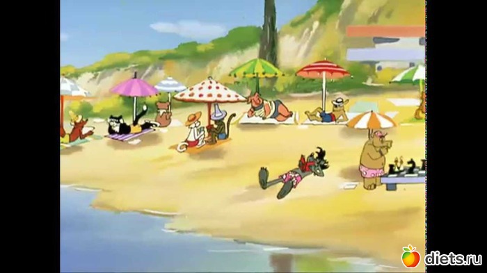 За основу взяли мультфильм, где волк с зайцем на море