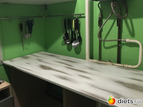 Минуса от витаминного не ждала, потому что достаточно поздно съела салат из овощей свежих (не планировала, но муж заехал купил) и фисташек поздно погрызла. Однако весы показали минус 300 грамм. Видимо, физическая нагрузка со столешницей помогла )))
