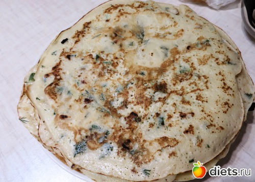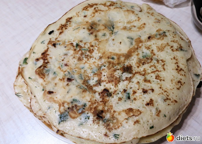 ужин - блинчики с луком и зеленью(съела 3 штуки)