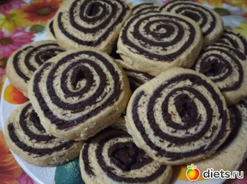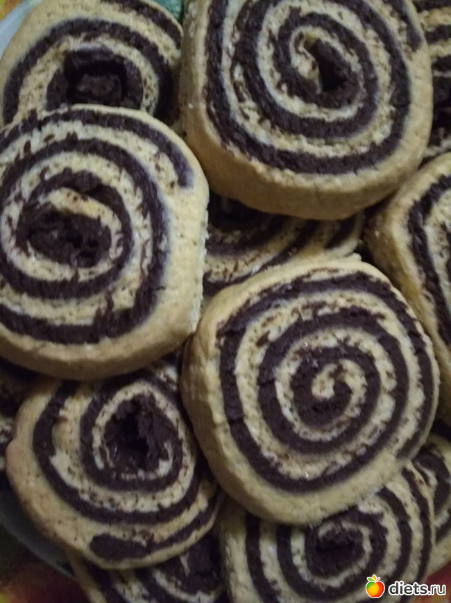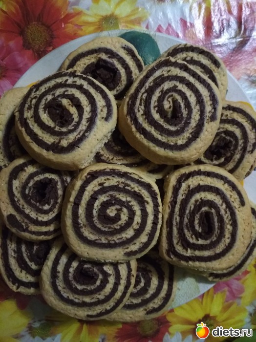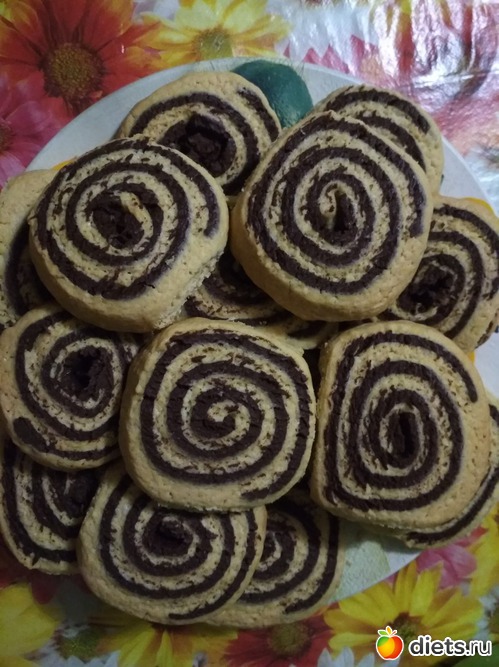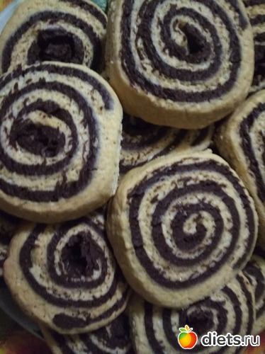 Сегодня я спешу предложить вашему вниманию песочное ванильно-шоколадное печенье. Из-за узора оно имеет много названий:улиточки, спиральки, серпантин... Моей доченьке очень нравится название-улиточки!
