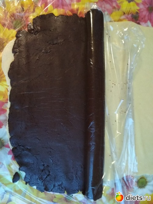 Теперь на белый пласт выкладываем черный, как у меня на фото