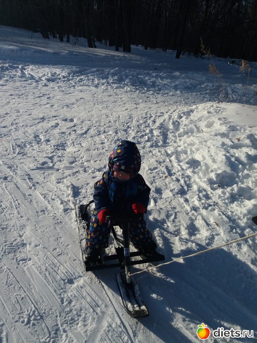 Друзья нас сегодня вытащили в лес на шашлыки. Мальчиш отобрал у девочки (дочки друзей) снегокат и всё время, что мы там были, заставлял его катать. Благо, девочка не вредная, разрешила. А мы с мужем решили ему купить такой же: