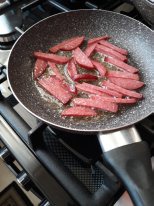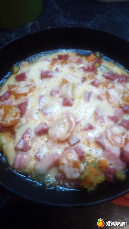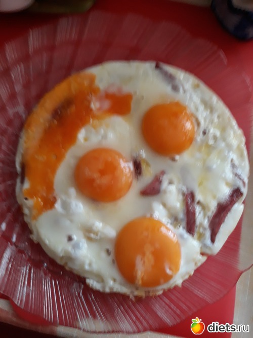 -Яичница с копченой колбасой(так захотелось мужу и попросил пожарить 4 яйца)