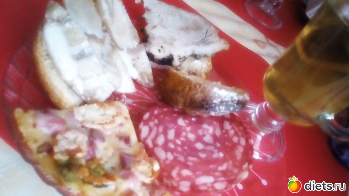 -пицца на сковороде+бутерброды с колбасой, домашним зельцем и домашней бужениной+ заваренный чабрец