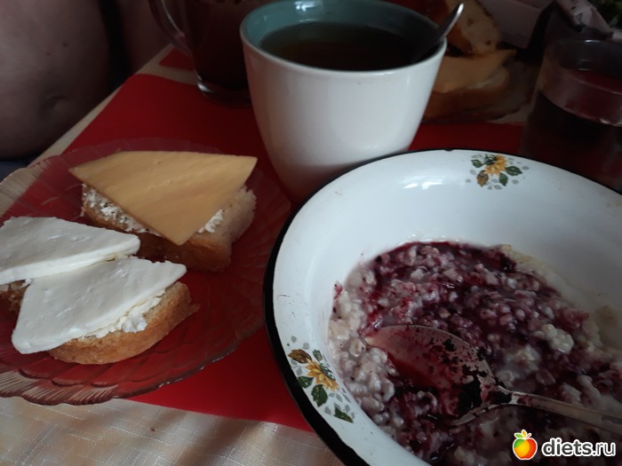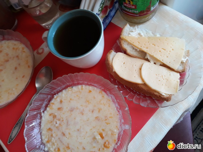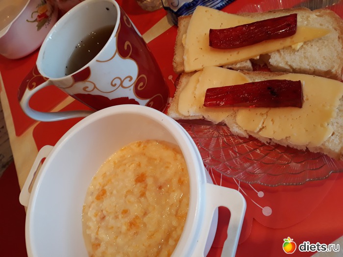 -пшенная молочная каша с тыквой+бутерброды с сыром+чай из моего сбора