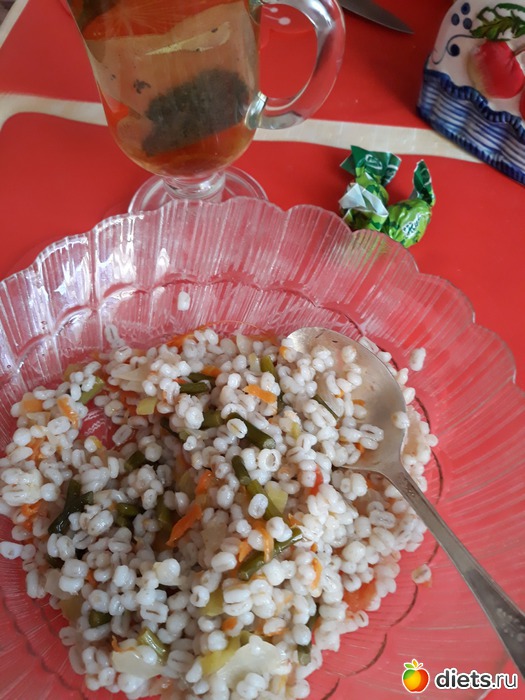 -Перловая каша с овощами+чабрец+2 мармеладных конфетки