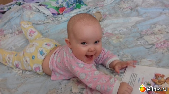 Сколько ей уже? Моей 6 месяцев 3 недели, тоже уже "читает", но больше любит "играть" на пианино.