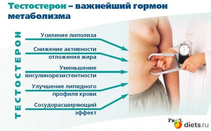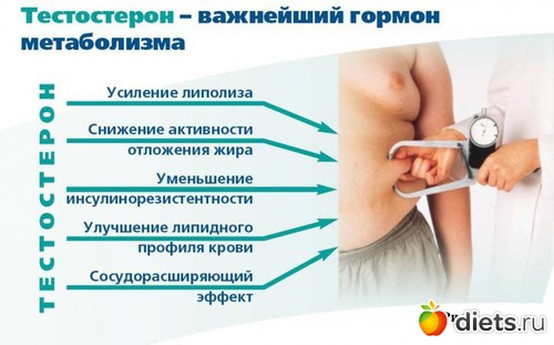 Третий компонент МГТ – тестостерон. Во-первых, тестостерон является предственником эстрогенов. Во – вторых, основной гормон, поддерживающий мышечную ткань, а мышцы скелета являются основным поглотителем глюкозы (рис. 8).