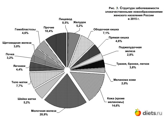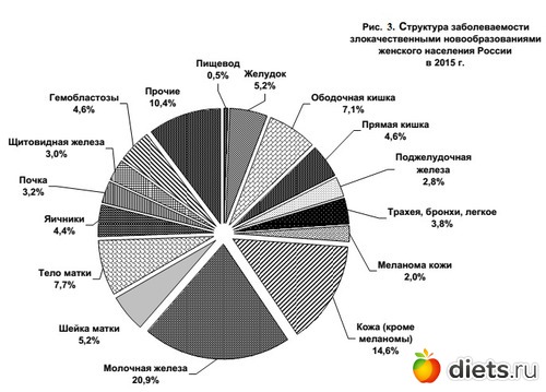 Структура заболеваемости злокачественными новообразованиями женского населения России